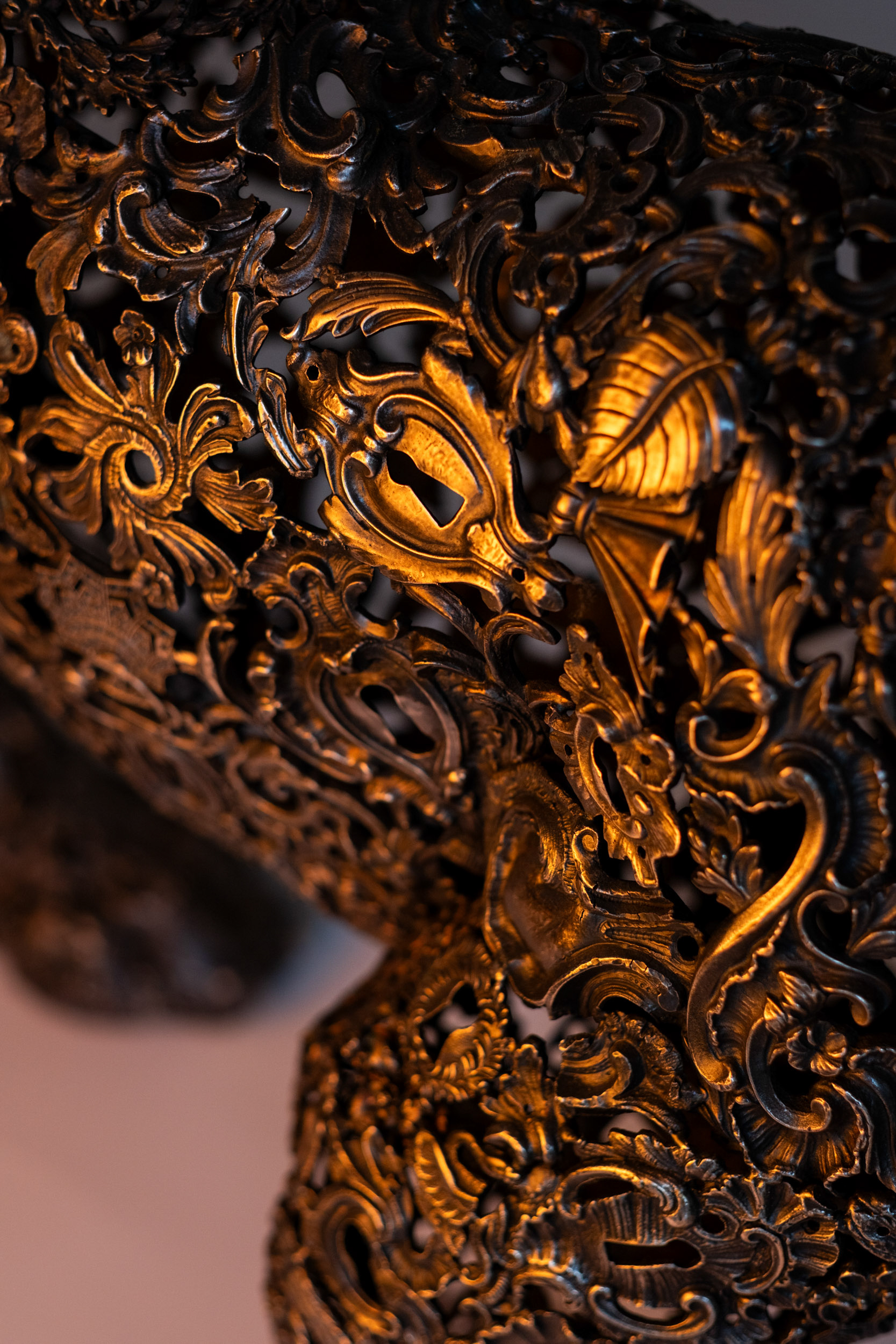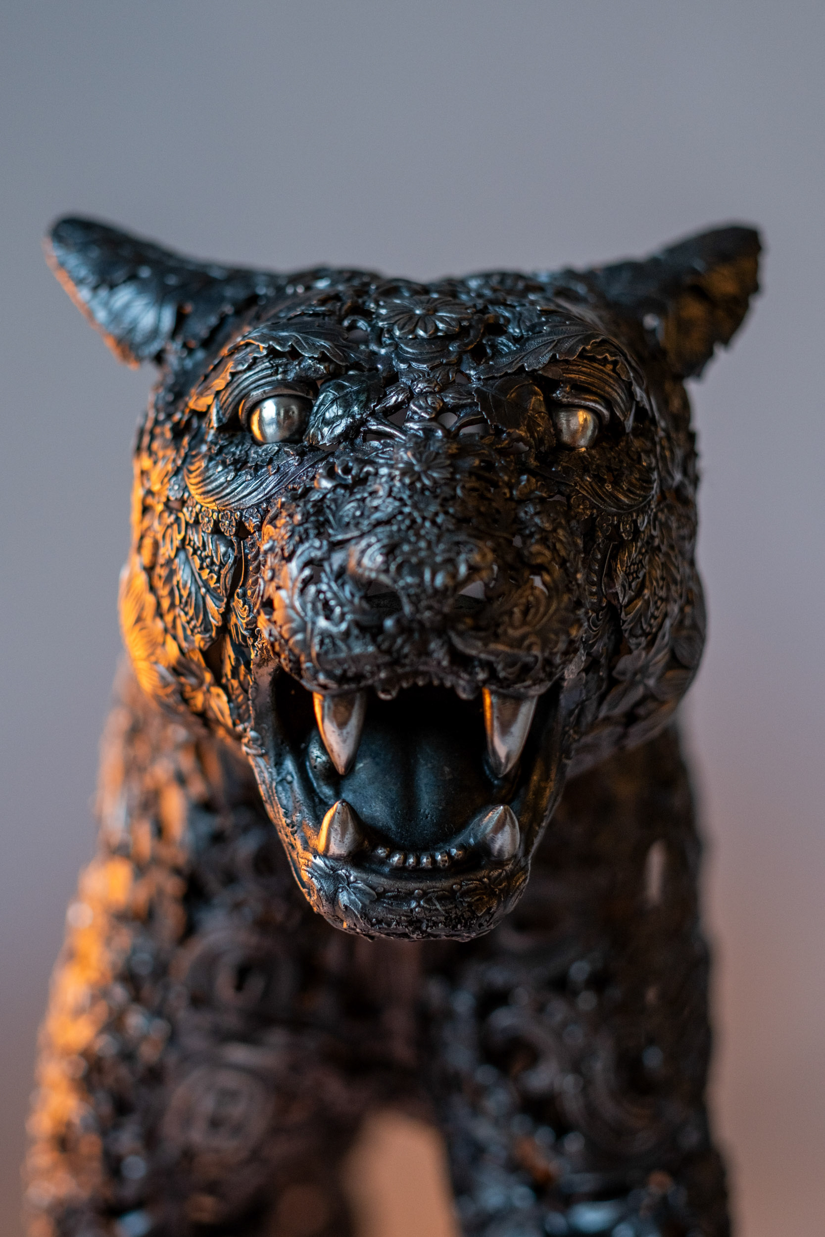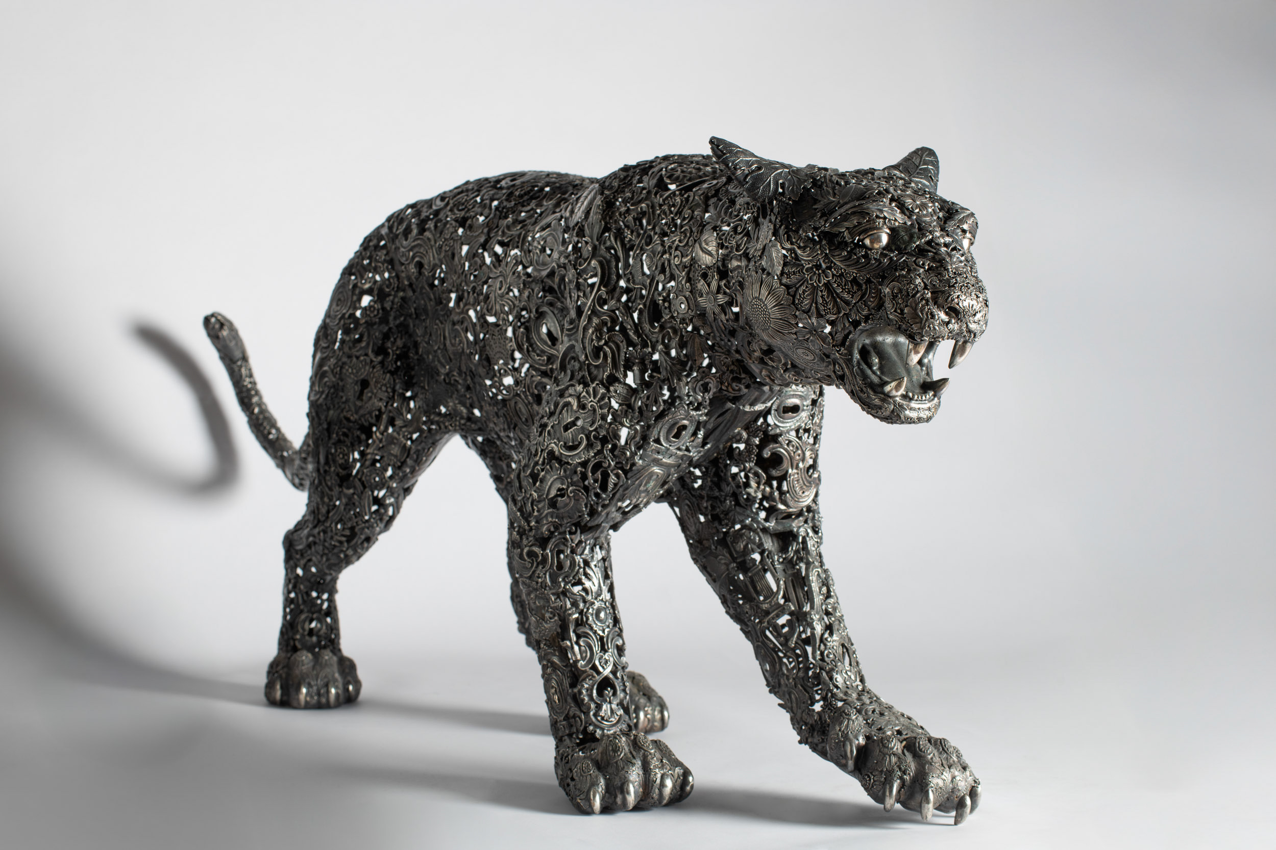 Sculpture en bronze à patine argentée Pièce unique composée d’ornements anciens