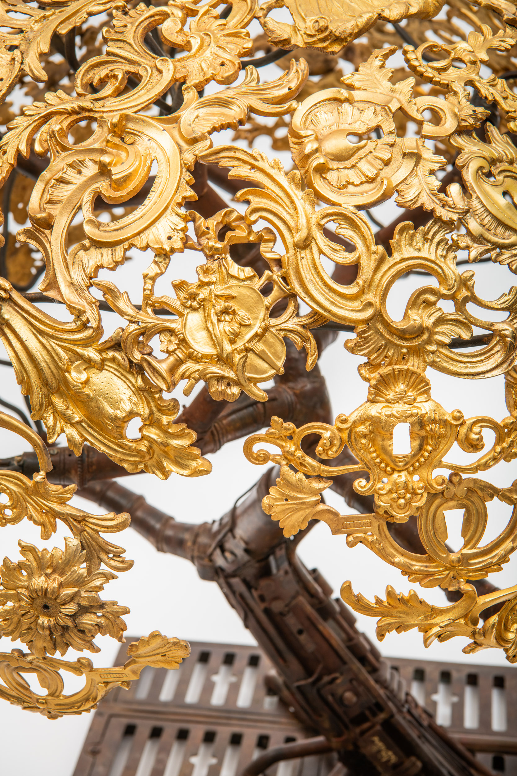 Sculpture en bronze doré et à patine brune Pièce unique composée d’ornements anciens